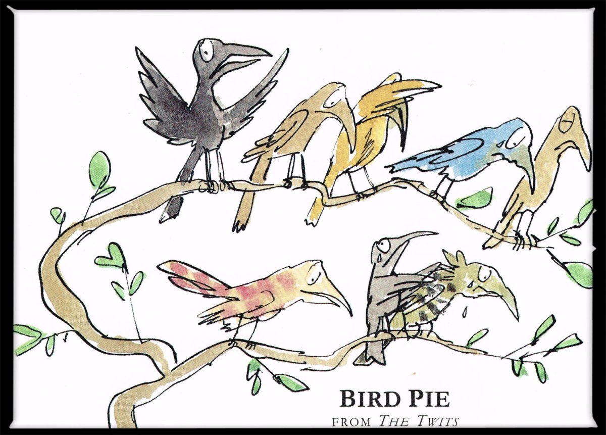 bird-pie Published September 27, 2016 at 2091 × 1501 in 5 Lessons I learned from Roald Dahl ← Previous Next → Bird Pie (The Twits)
